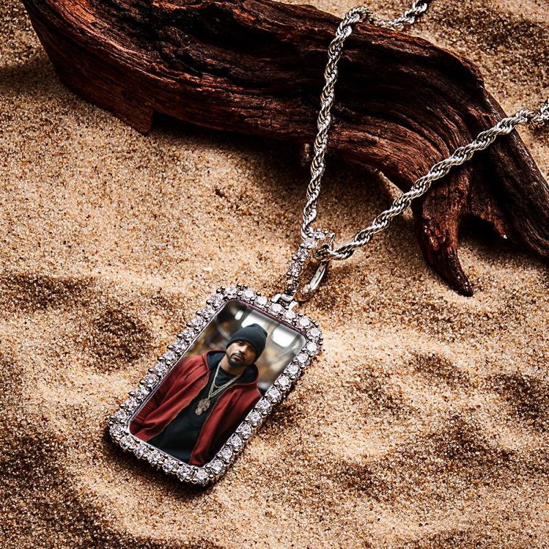 Personalized Photo Hip Hop Necklace Trendy Square Zircon Necklace For Him