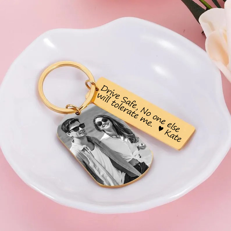 Personalized Photo Keychain, Engraved Picture Keychain, 1st Anniversary Boyfriend Gift, Girlfriend Gift Idea, 10 Years Valentine's Day Gift