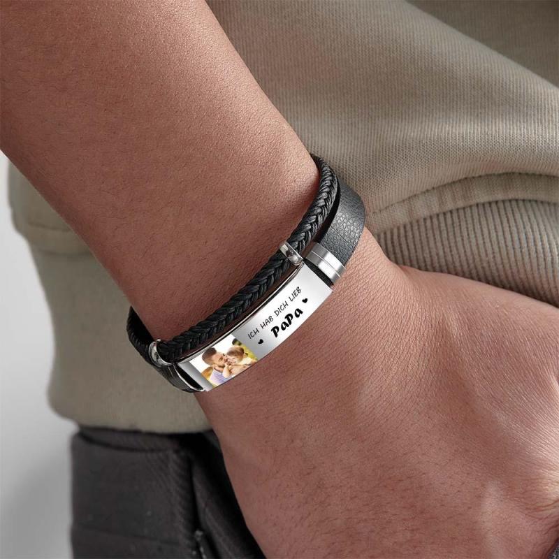 Personalized Photo Leather Bracelet With Text Braided Bangle Father's Day Gifts