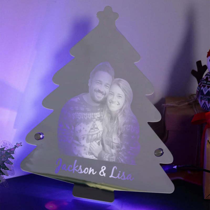 Personalized Photo Name Christmas Tree Mirror Lights Couple Gift