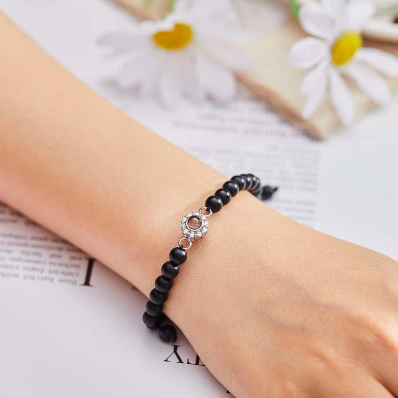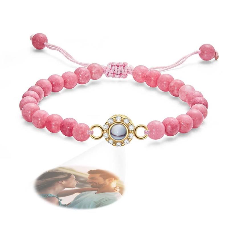 Personalized Photo Projection Beads Bracelet With Rhinestones Sweet Gift For Her