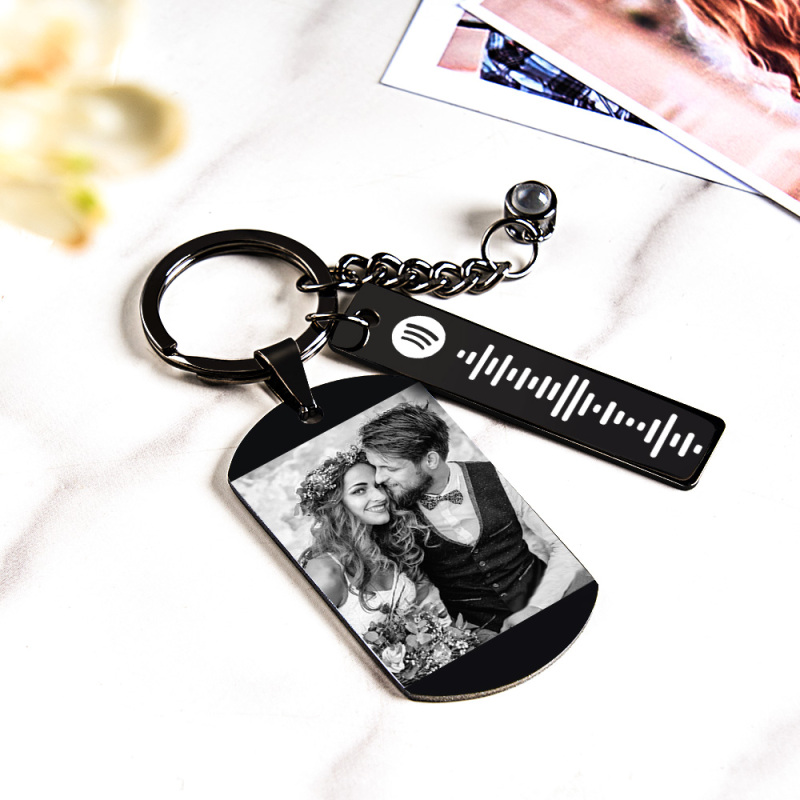 Personalized Photo Projection Spotify Calendar Keychain Custom Photo and Music Keyring Anniversary Gifts