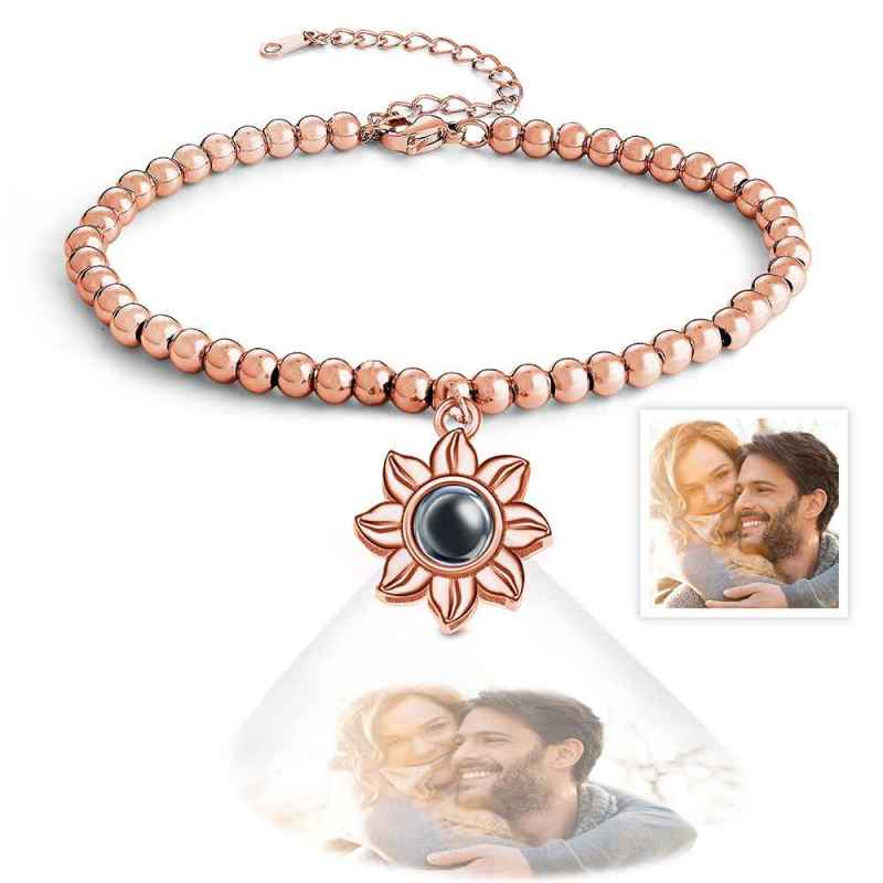 Personalized Photo Projection Sunflower Bracelet Exquisite Memorial Bracelet Jewelry For Her