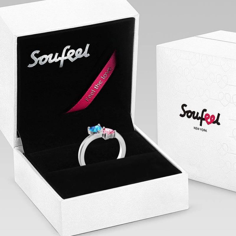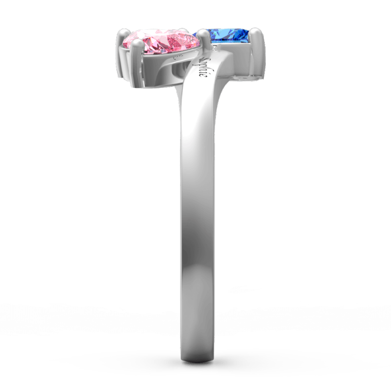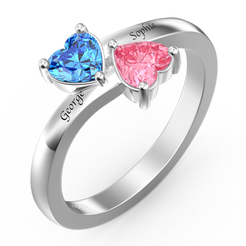 Personalised Birthstone with Engraving Double Heart promise Ring Silver