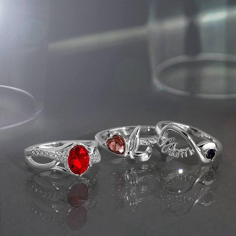 Personalised Birthstone Eternity Ring with Twin Accent Rows Silver