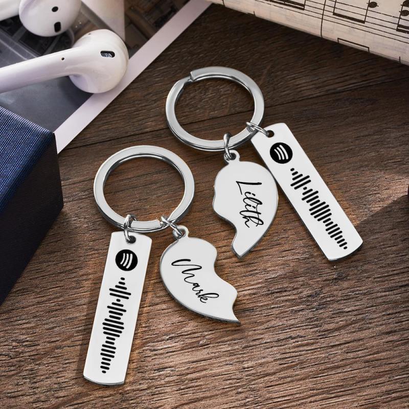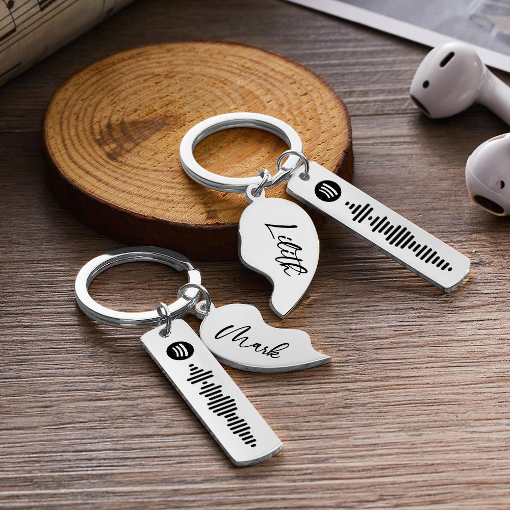 Personalized Spotify Code Keychain Custom Name in Heart Shape Keychain Valentine's Day Gift for Her