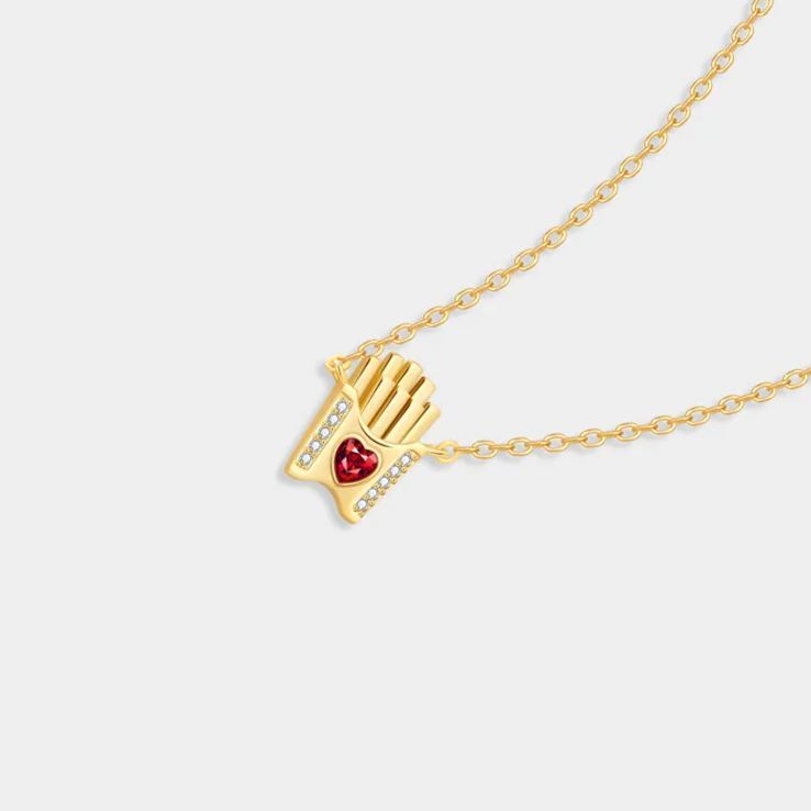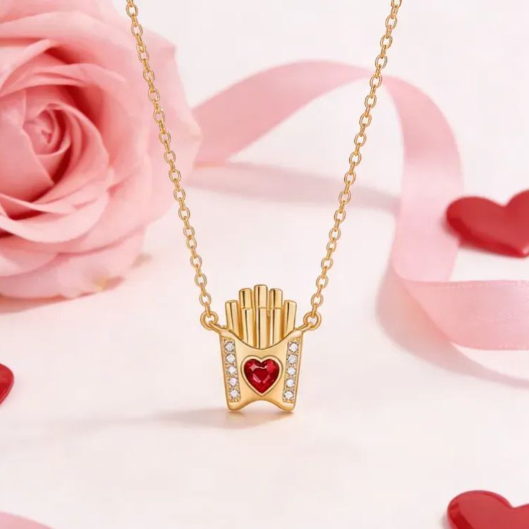 Personalized Sterling Silver French Fries Necklace with Birthstone – Fun Valentine’s Day Gift for Her