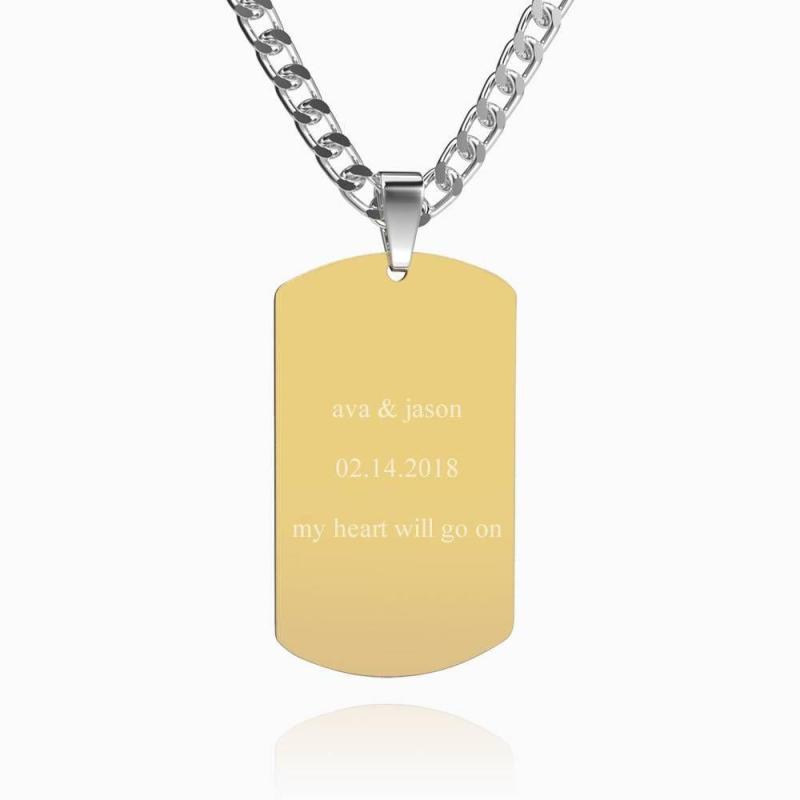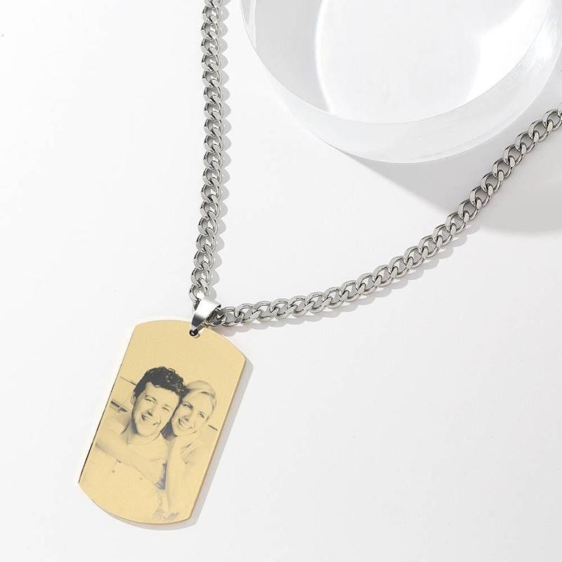 Photo Engraved Tag Necklace With Engraving 18k Gold Plated Stainless Steel