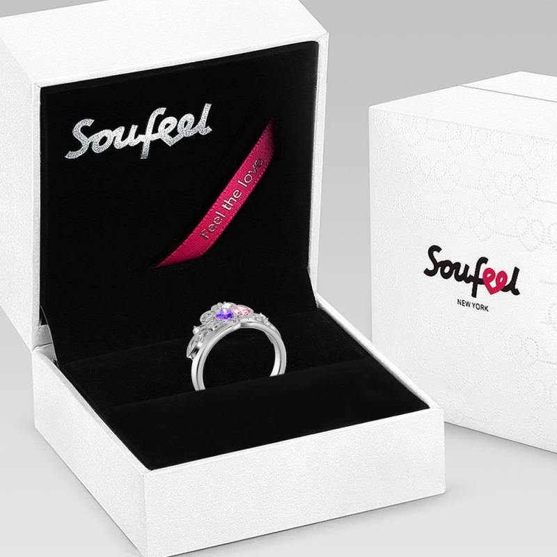 Personalized Heart Birthstone Crown Princess Promise Ring with Engraving Silver
