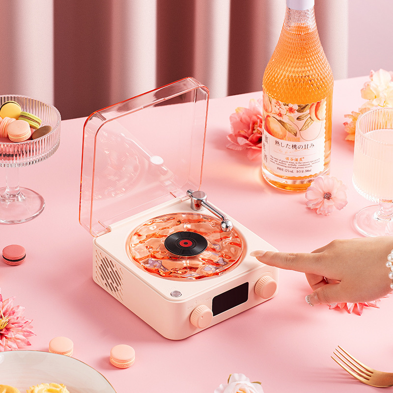 Gifts for Her Retro Mini TurntaRetro Mini Wave Turntable White Noise Machine & Bluetooth Speaker - 7 Colors, 4 Soothing Sounds, RGB/Breathing LED Bedside Night Light/Clock Waves Vinyl Speaker