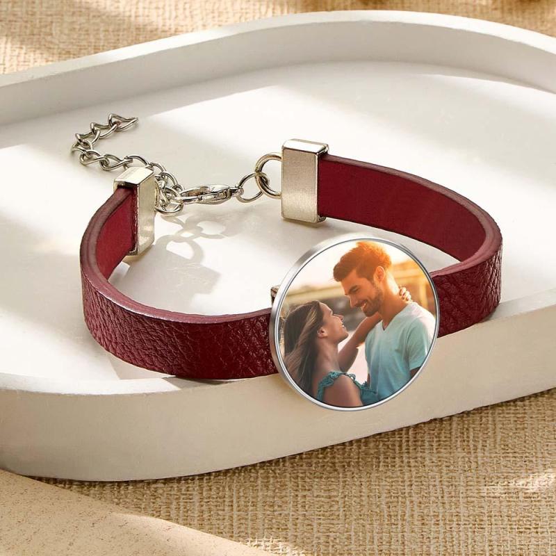 Retro Photo Leather Bracelet With Text Men's Bracelet Father's Day Gift