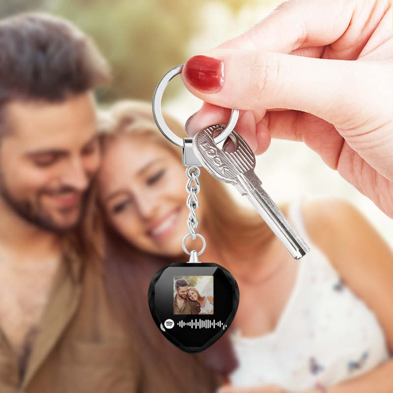 Scannable Custom Photo Spotify Code Keychain Engraved Music Song Crystal Keychain Memorial Gifts