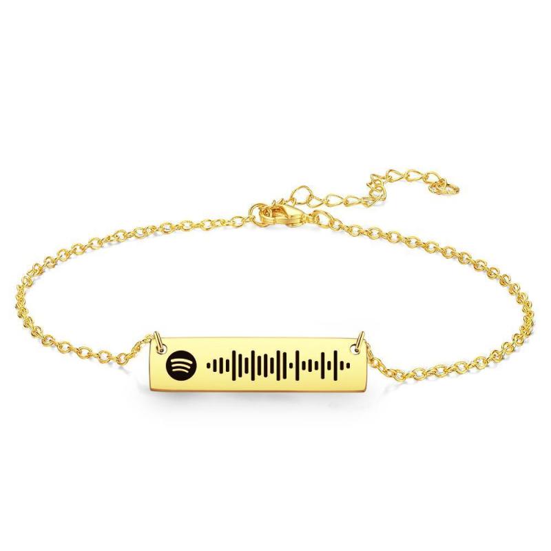 Scannable Spotify Code Anklet Engraved Bar Anklet Golden Color Gifts for Valentine's Day