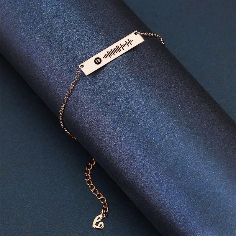 Scannable Spotify Code Anklet Spotify Favorite Song Engraved Bar Anklet Rose Gold Anniversary Gifts