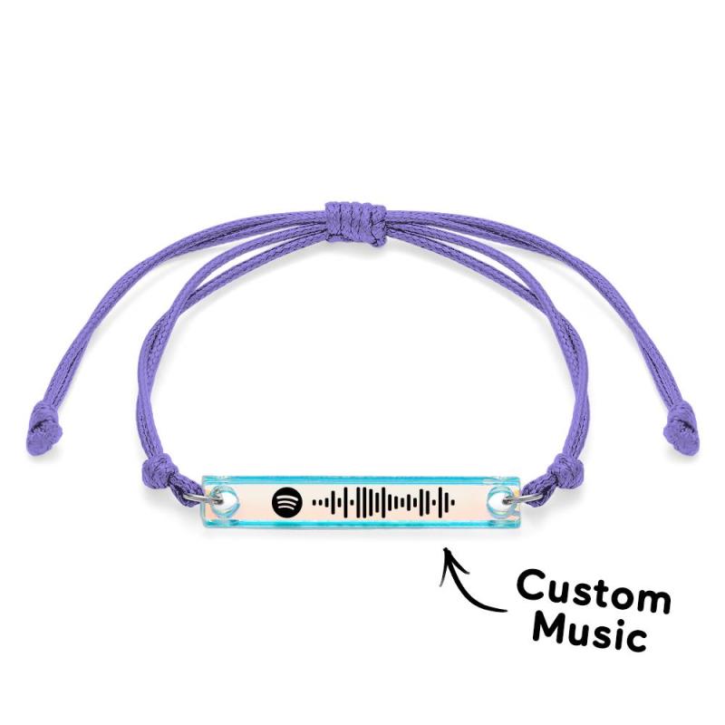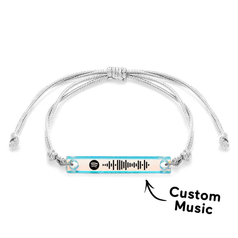 Scannable Spotify Code Transparent Gradient Color Bracelet Personalized Music Laser Colorful Acrylic Plaque Adjustable Bracelet Gift For Him