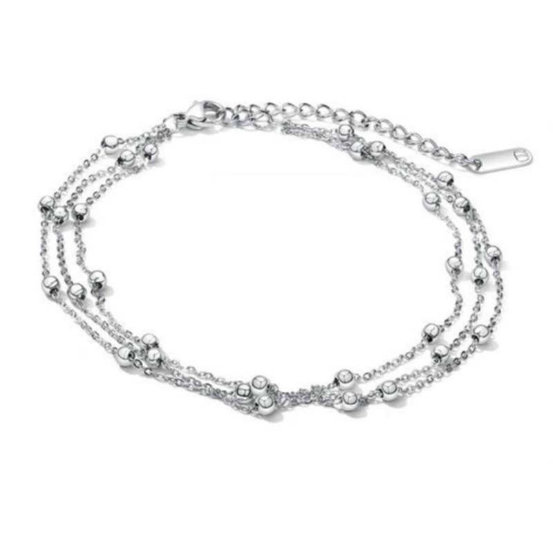 Silver Beaded Multi-layered Anklet