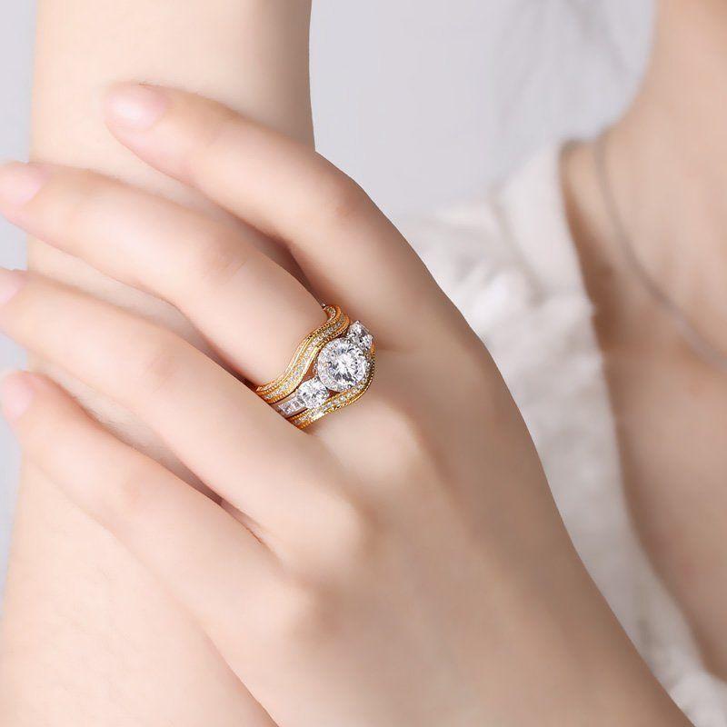Treasure My Love Engagement Wedding Bridal Ring Set 14k Gold Plated 925 Sterling Silver