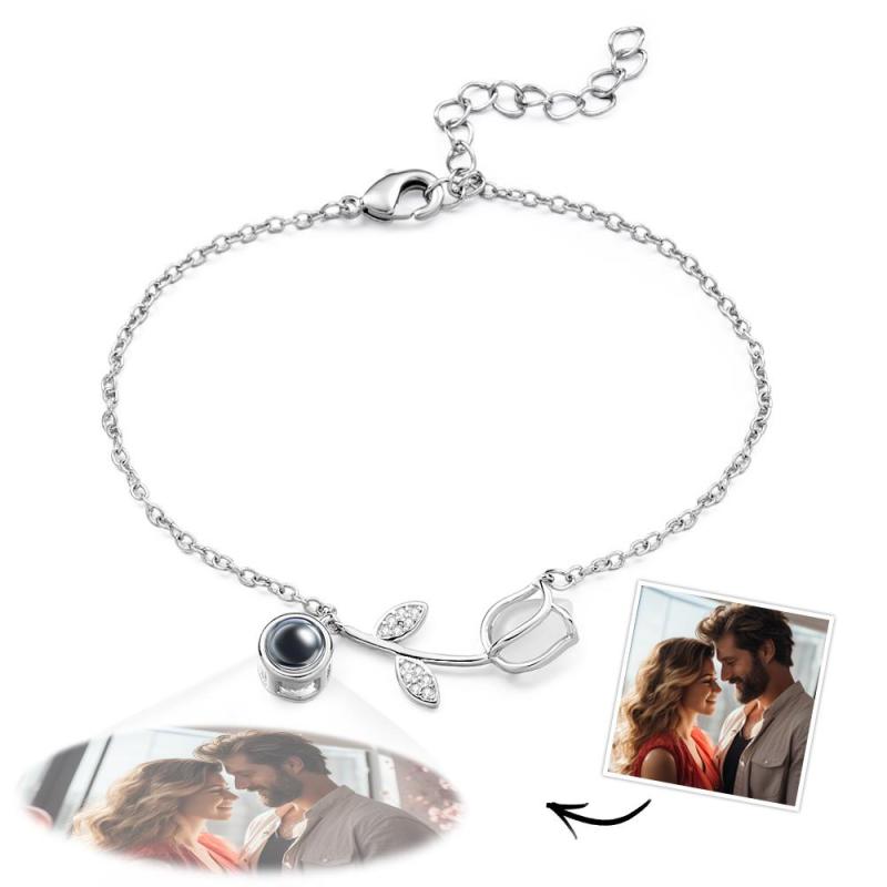 Tulip Photo Projection Bracelet Personalized Picture Flower Bracelet Minimalist Pet Memorial Jewelry