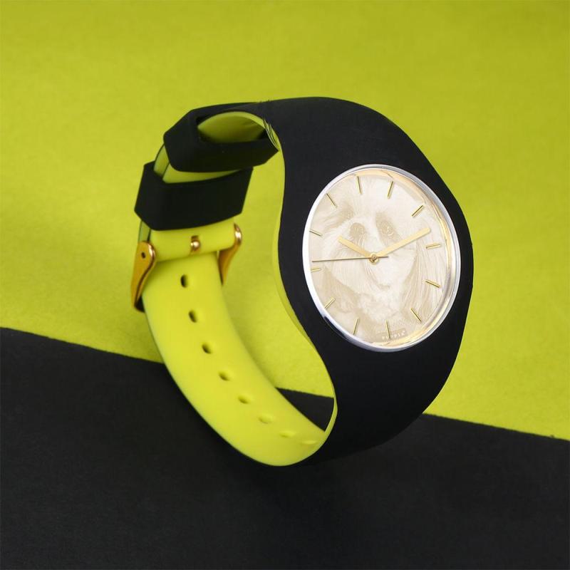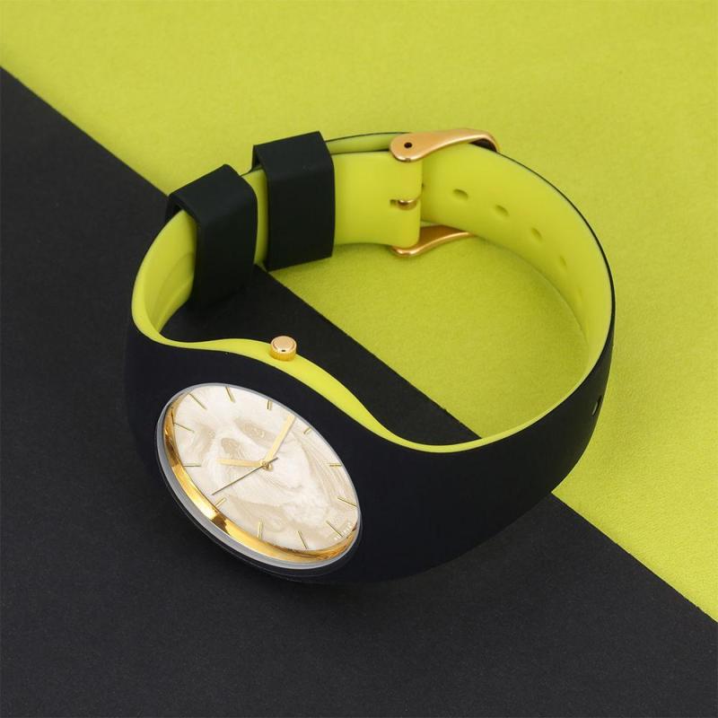Unisex Silicone Engraved Photo Watch Unisex Engraved Photo Watch 41mm Black and Green Strap - Golden