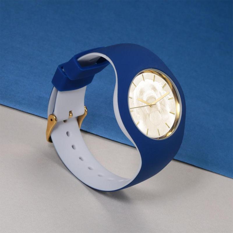 Unisex Silicone Engraved Photo Watch Unisex Engraved Photo Watch 41mm Blue and White Strap - Golden