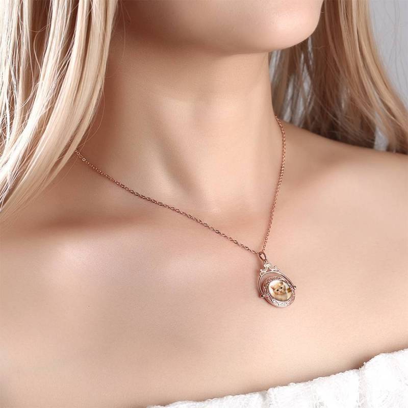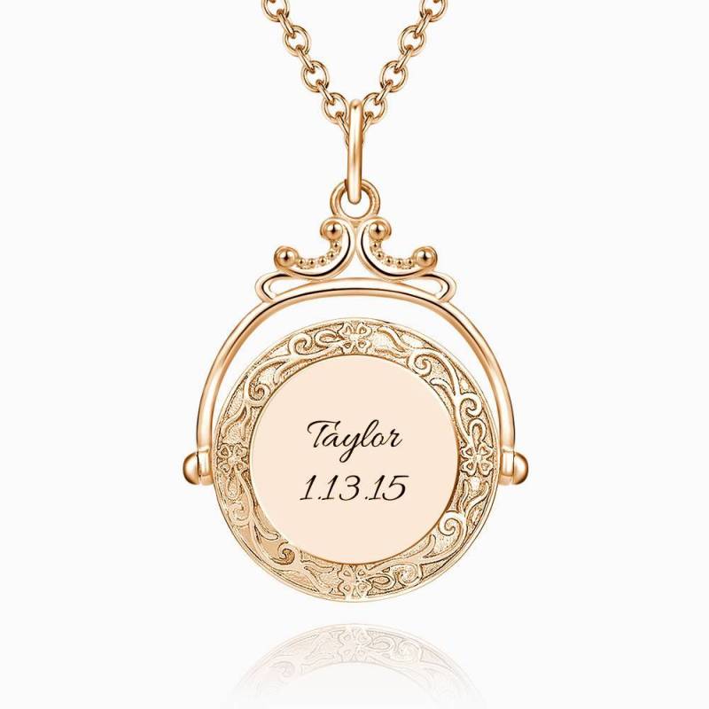 Vintage Embossed Mirror Photo Necklace Rose Gold Plated
