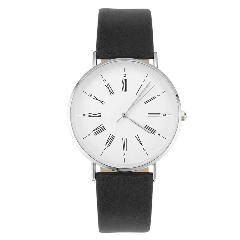 White Dial Watch Fashion Quartz Black Leather Strap Business Watch - Men's