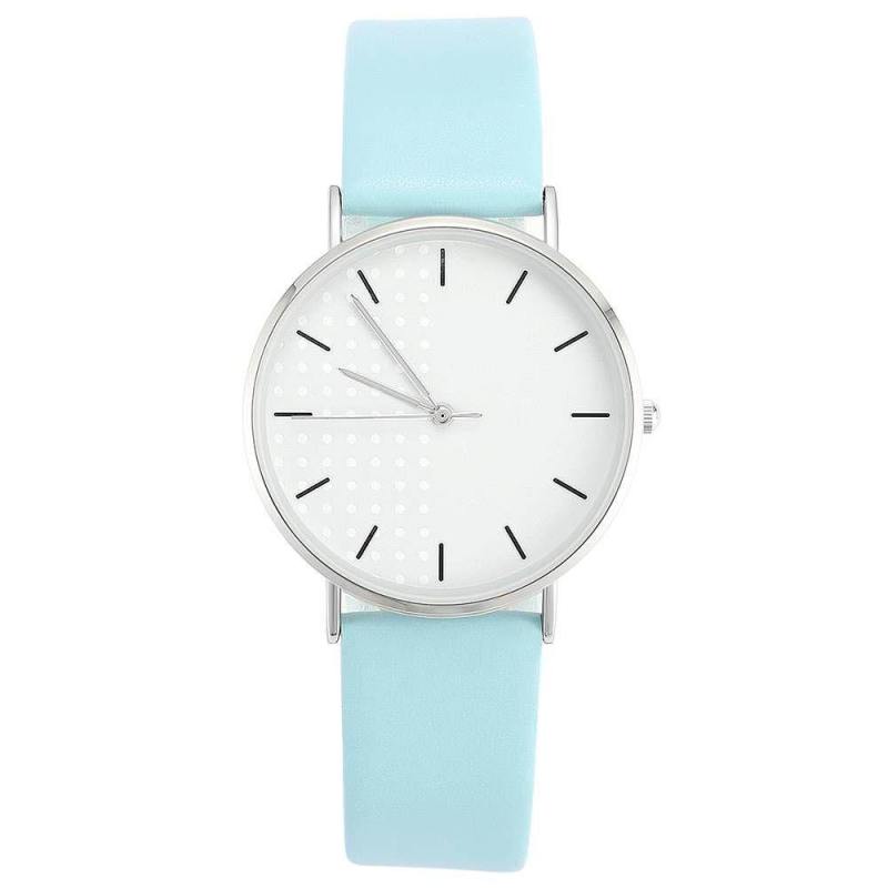 White Dial Watch Fashion Quartz Blue Leather Strap - Men's
