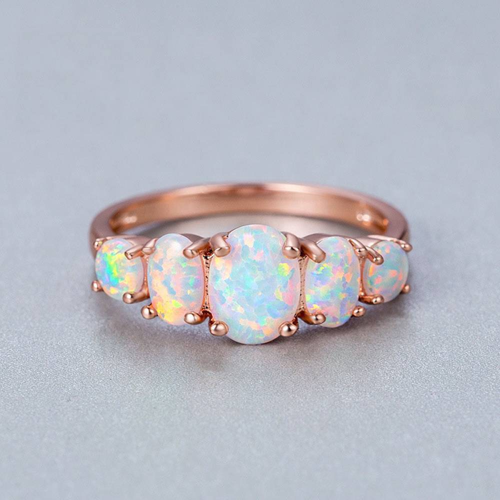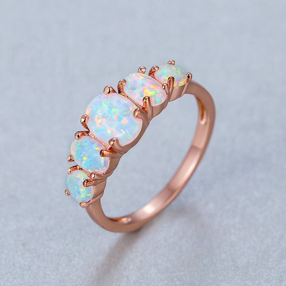 White Opal Ring 18k Rose Gold Plated
