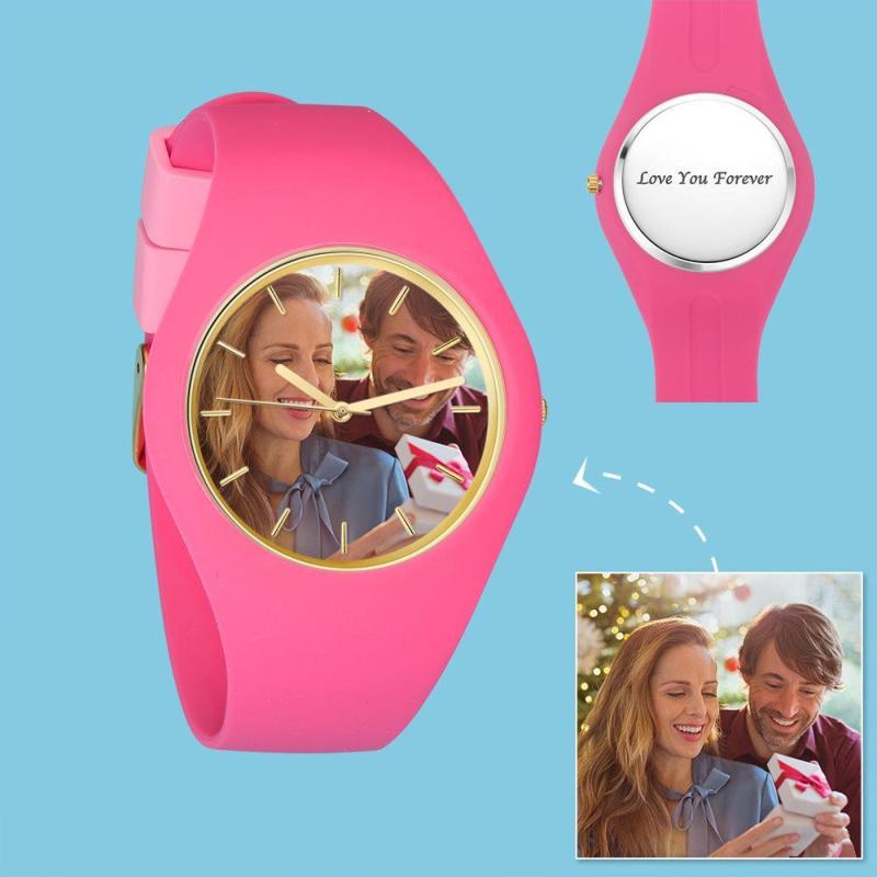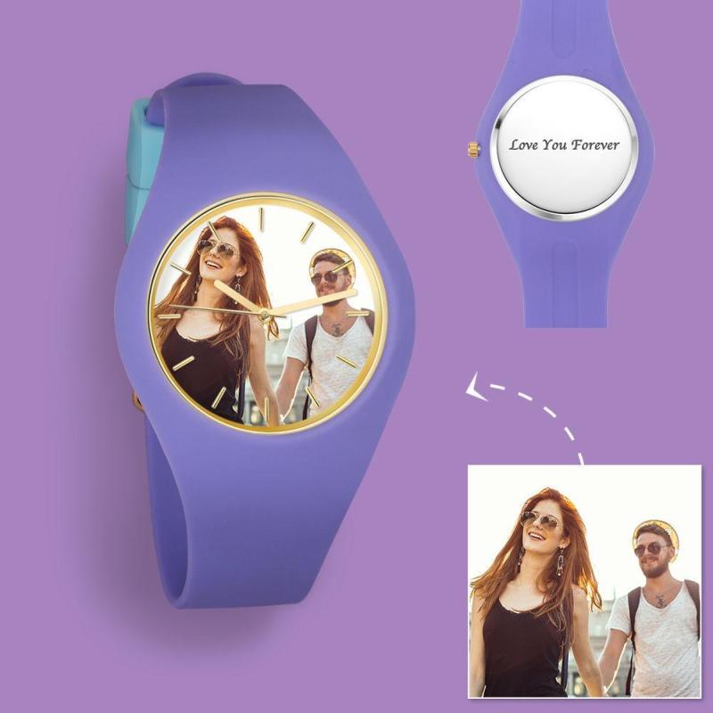 Women's Silicone Engraved Photo Watch Women's Engraved Photo Watch 41mm Purple Strap