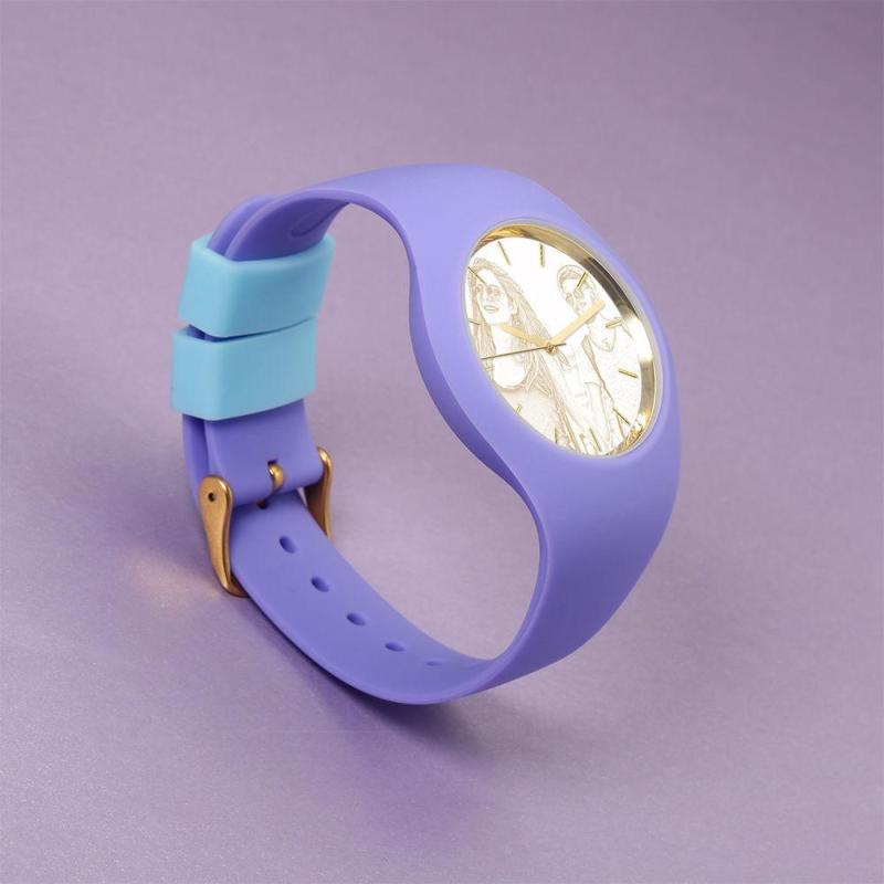 Women's Silicone Engraved Photo Watch Women's Engraved Photo Watch 41mm Purple Strap- Golden