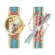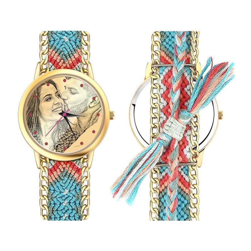 Women's Gold Photo Engraved Watch Braided Color Rope Strap 40mm