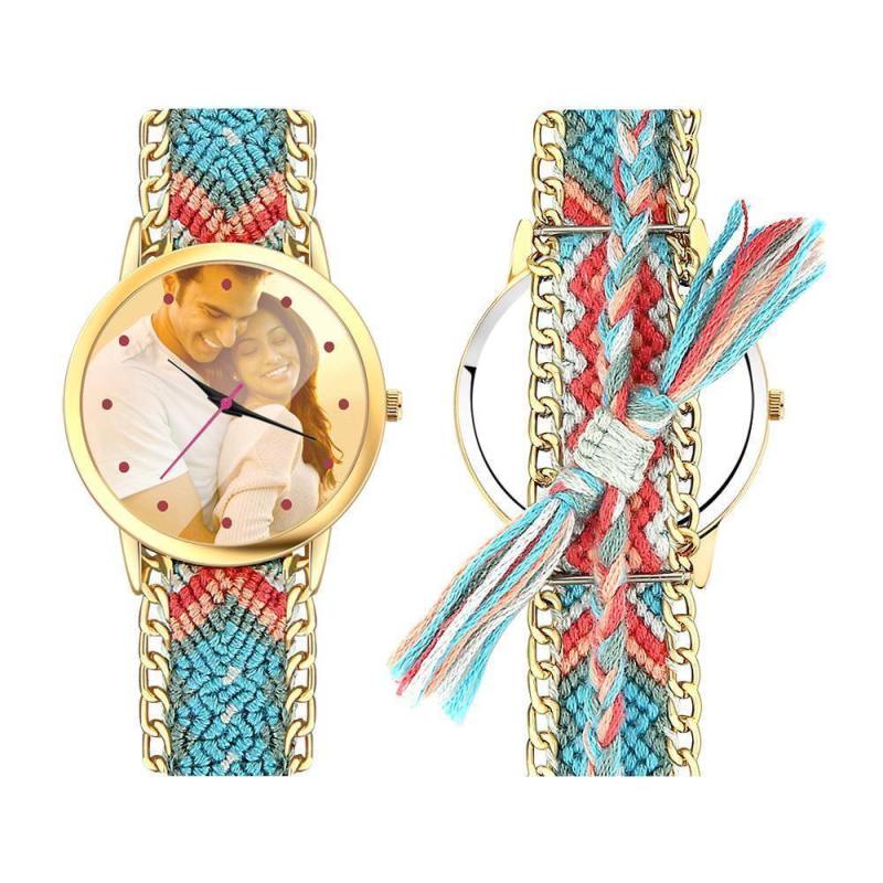 Women's Gold Photo Watch Braided Color Rope Strap 40mm