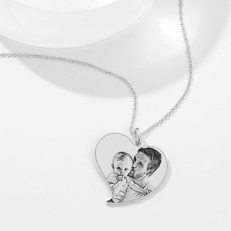 Women's Heart Photo Engraved Tag Necklace with Engraving Silver