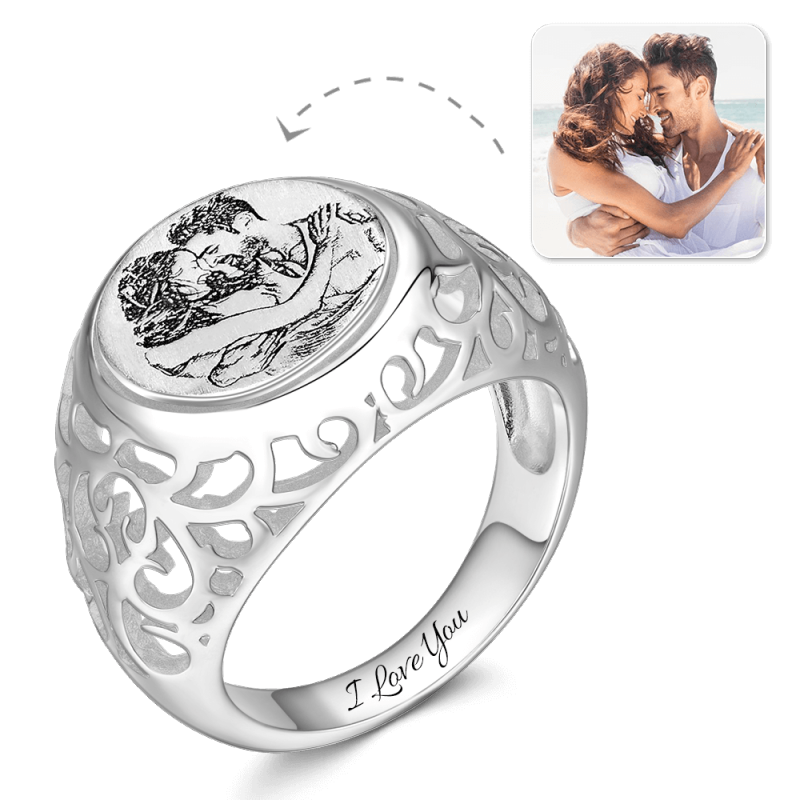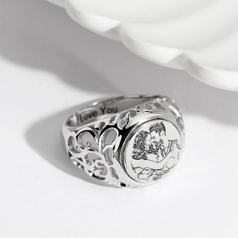 Women's Photo Engraved Ring with Engraving Silver
