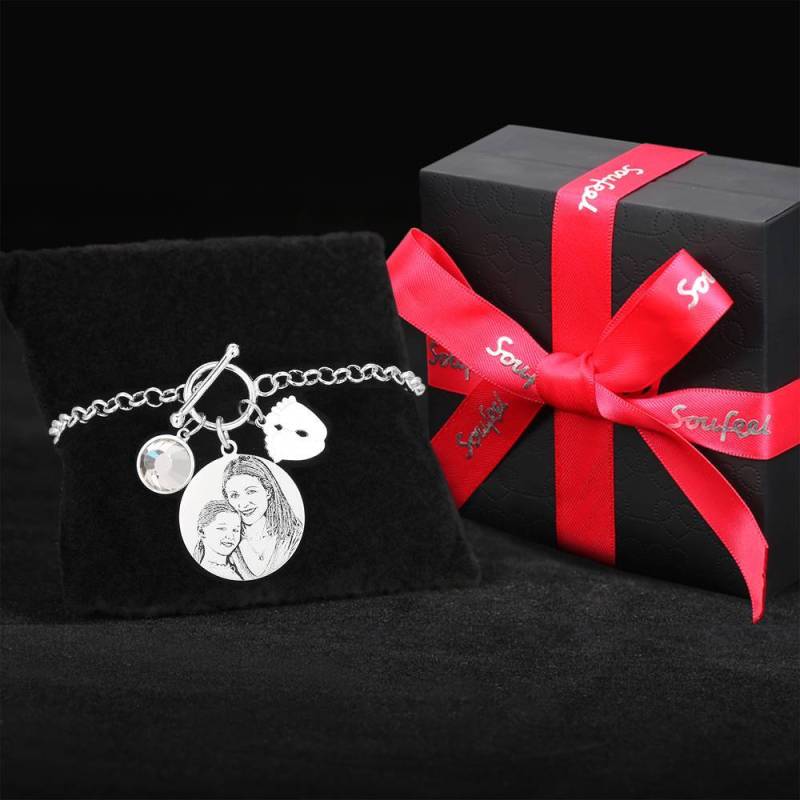 Women's Photo Engraved Tag Bracelet With Engraving Silver